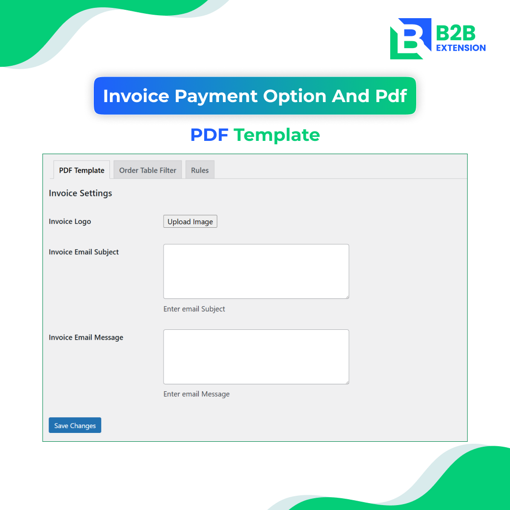 Go to the PDF Template tab to upload your logo and customize the subject and message of the invoice emails sent to customers.
