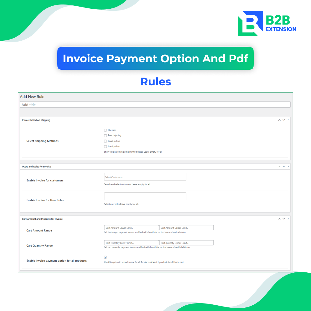 - User Role & Customer-Specific Invoice Rules: Apply invoice payment options based on specific user roles and customers.
